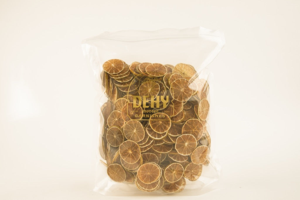 Ditch the fresh wedges and wheels for something more sustainable, and far more interesting. DEHY lime’s darker flesh contrasts lighter colors and adds flair to classic cocktails like the Margarita, Moscow Mule, and the Naked & Famous.